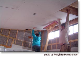 Hoisting the Drywall Onto the Ceiling