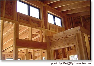 Construction Phase II: Framing, Electrical Wiring, Indoor Septic Lines, and Exterior Insulation. Photos Sept - Oct 2007.