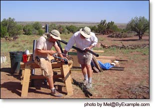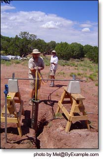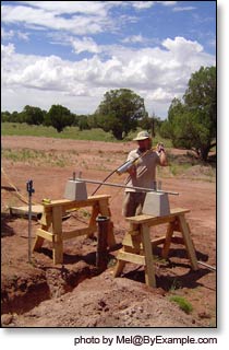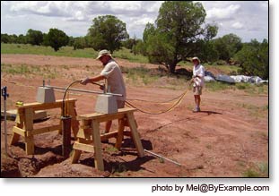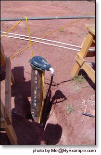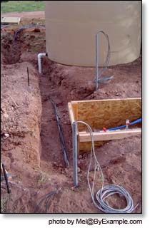 Installing our solar powered submersible well pump, 1600 gallon water storage tank, Pex water lines, septic, phone and data lines. Photos Summer 2007.
