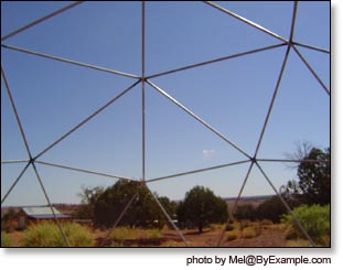 Photos from our first experiment in building a geodesic structure. March 2006.